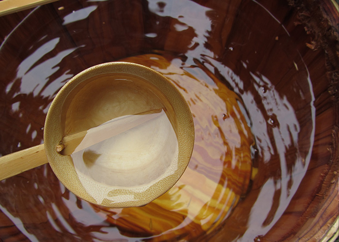 酒造りには良質な水が欠かせません。世界遺産で有名な日光二荒山神社の別宮・滝尾神社の境内には、弘法大師にまつわる伝承で知られる日光三大霊水のひとつ「酒の泉」があります。良酒を生み出すと言われ酒通の崇敬を集めるこの「酒の泉」を元水とし、同じ日光連山より流れ出る大谷川の伏流水が「千両水」であり、私たち片山酒造が、明治13年の創業以来使用してきた水です。片山酒造の初代創業者は、新潟県柏崎市より良質な水を求めて旅立ち、ここ日光市今市でようやく納得のいく水に辿り着きました。「千両水」は地下16mからくみ上げた口当たりのよい軟水で、酒造りに使用するとまろやかな味わいと香りを生み出します。