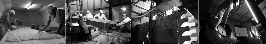 「もろみ」をひとつひとつ、人の手で袋詰めし、丹念に積み重ねて、上からゆっくりと圧をかけてお酒を搾るのです。余分な雑味が出ないようにするため、一回めはもろみ自身の重さで、その後、徐々に圧力を加え、3~4日間かけてゆっくりと搾っていきます。